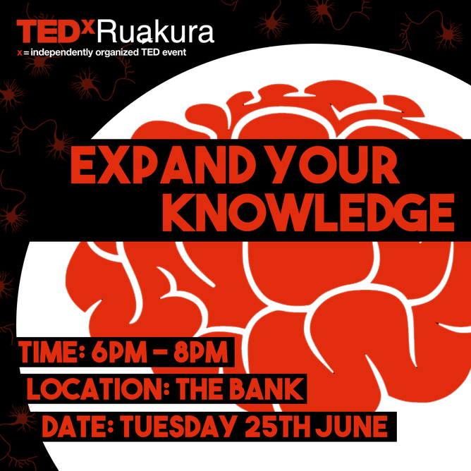 'Expand your knowledge' is the theme for the upcoming TEDX Ruakura event, to be held on the 25th of June at the Bank in Hamilton. The event is set to see two speakers that are world class and highly respected in their fields.